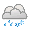 Trüb und zunächst schneit es leicht, nachmittags Übergang zu trockenerem Wetter.
